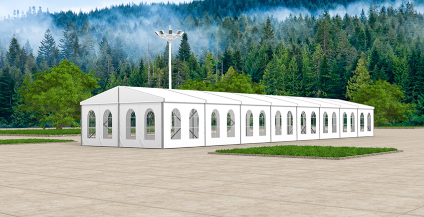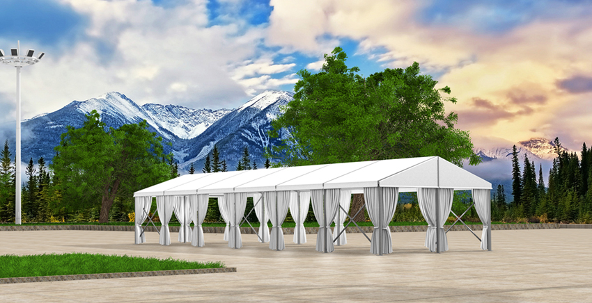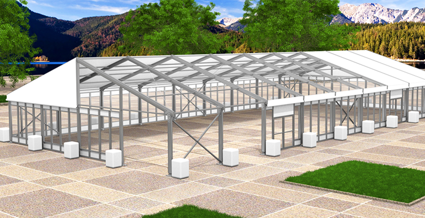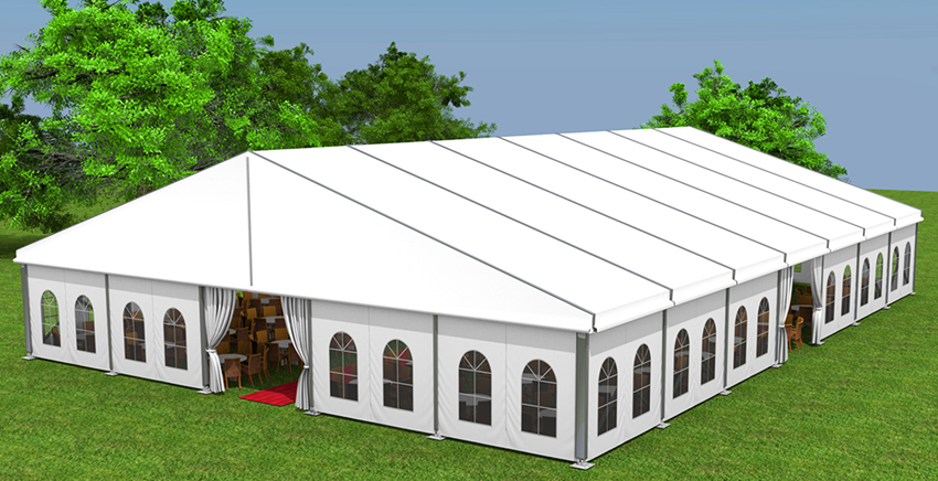 屋脊篷房系列品種繁多,提供從6米到50米的多種跨度。屋脊篷房采用模塊化設(shè)計(jì),篷房長度可按3米或者5米的倍數(shù)延長。屋脊篷房采用高強(qiáng)度鋁合金型材(6061-T6)作為主框架,外圍采用PVC刀刮涂層布做圍擋。此外,屋脊篷房高適應(yīng)性的特點(diǎn),可以讓它融入各種建筑特色,也可以與同類產(chǎn)品,如:如尖頂篷房、多邊型篷房等組合使用。