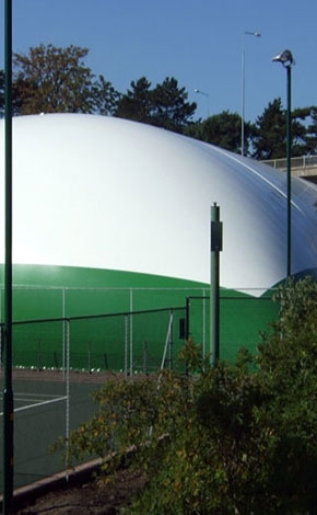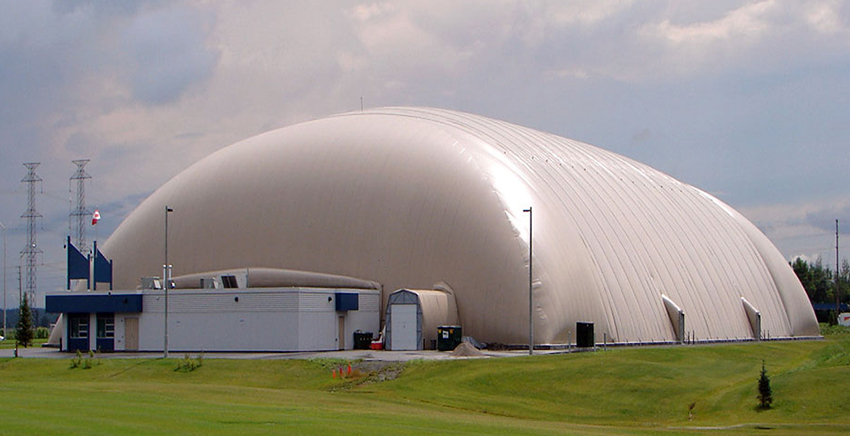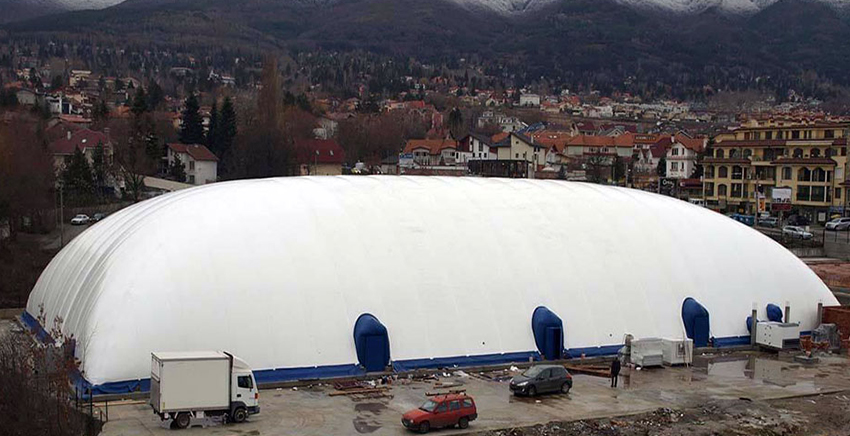 氣膜建筑是用特殊的建筑膜材做外殼,配備一套智能化的機(jī)電設(shè)備在氣膜建筑內(nèi)部提供空氣的正壓把氣膜建筑主體支撐起來的一種建筑結(jié)構(gòu)系統(tǒng)。