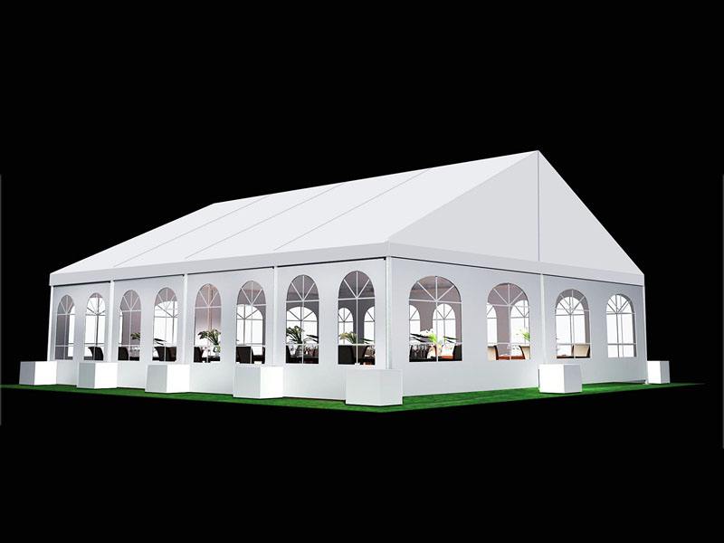選擇可移動的篷房作為臨時建筑使用,重要的一點是:安全保證。目前行業(yè)內(nèi)使用廣泛安全系數(shù)高的就是鋁合金篷房,它抗風(fēng)阻燃,空間利用率高。