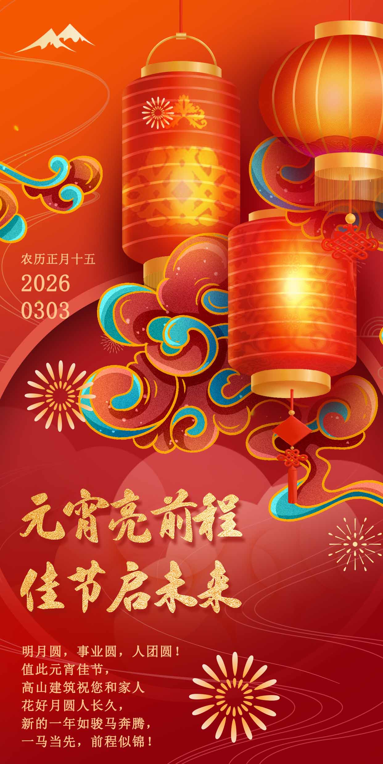 燈火璀璨映佳節(jié),元宵安康啟新篇。當(dāng)一輪圓月懸于夜空,當(dāng)一盞盞花燈點(diǎn)亮街巷,我們迎來(lái)了正月十五元宵節(jié)——這個(gè)承載著團(tuán)圓期許、寄托著美好愿景的傳統(tǒng)佳節(jié)。值此良辰,高山篷房向每一位并肩同行的伙伴、每一位支持信賴(lài)我們的客戶,致以最誠(chéng)摯的元宵祝福,愿大家歲歲皆圓滿,事事皆順意。