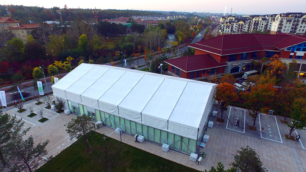 使用年會篷房的好處可太多了:篷房可以搭建于戶外,單獨營造一個年會場館,按參加的人數和需求面積進行選擇。工期短,受地形制約小,費用和一般租賃場地差不多。篷布可以定制logo噴涂,并且有法式飄窗和全透明篷布,玻璃墻等升級墻面。內部無立柱設計可兼容燈光,音響,投影,布幔內飾設施,滿足品牌定制化服務。
