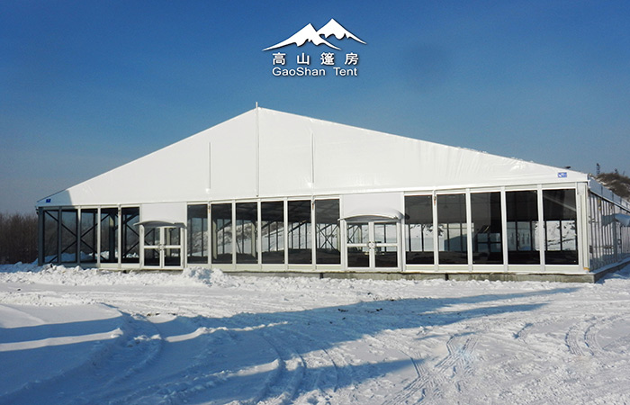 為了保證篷房在冬季的運用性,會分離當地狀況對篷房停止加固處置,增強空中固定方式、運用屋面鋼纜、十字撐、橫支撐、斜支撐等。既禁受住海拔上千米高原的冰冷,也抵御過大草原的勁風。